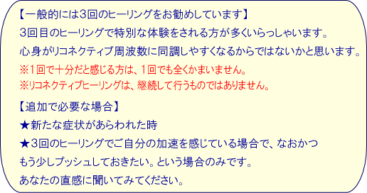 リコネクティブ周波数がもたらす癒しは、数日後から、しばらくの長い間つづきますので、その後フォローもさせていただいております。